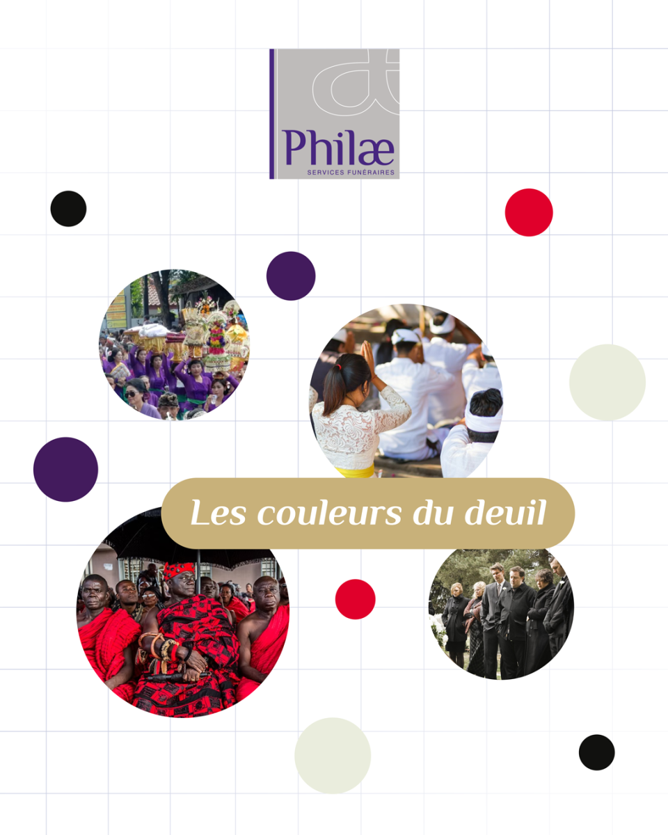 Chaque culture a sa manière d’honorer la mémoire des défunts, et cela se reflète dans les couleurs choisies :